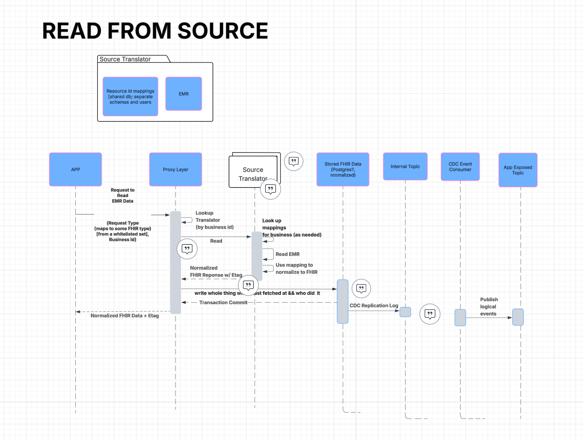 With correctness defined, we built the plane to enforce it in real time. Zephyr has four layers: Source Translators (one per EMR), the Proxy Layer (decision engine), a lightweight FHIR-inspired model (shared vocabulary), and Per-Actor Caches (snapshots governed by freshness policies).